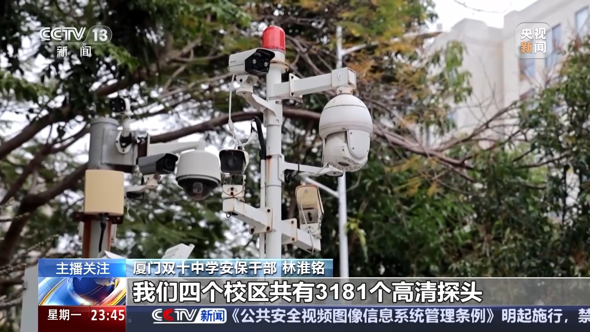 正在浙江绍兴诸暨市,诸暨市教体局安管科科长 张力:我们对27所寄宿制学校安拆了夜间异动预警系统,同时我们也把方才配送的车辆纳入了监管平台,正在全市255所中小学、长儿园校园及周边区域安拆视频、车牌抓拍等6大前端设备6400余套,能够随时监看各个学校食堂的每一个角落。上午11点。