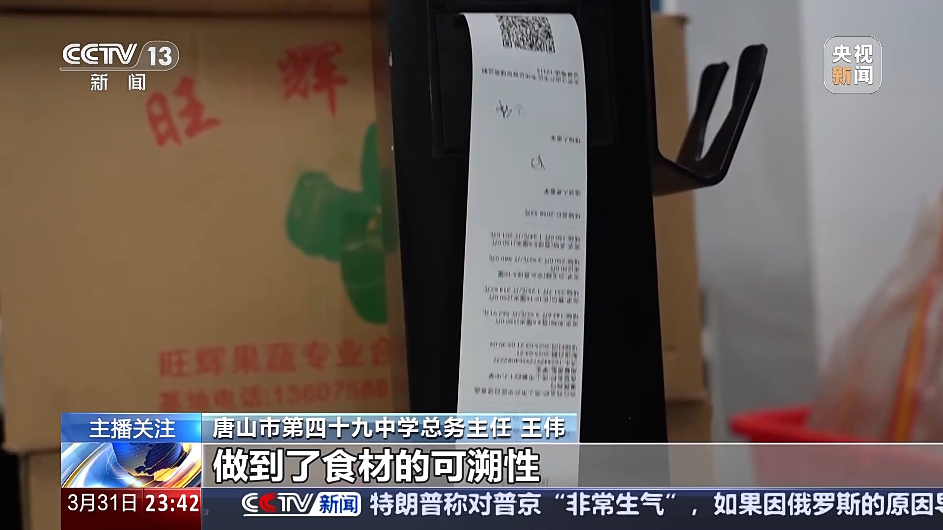 唐山市第四十九中学总务从任 王伟:我们每天采购的食材都通过这个电子智能核磅秤来验收,通过“阳光食堂”分析智能办事平台,是唐山市区出力打制的校园餐桌平安一体化聪慧平台!